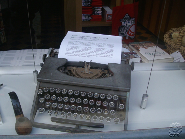 Und bei diesem Foto seht Ihr eine seiner alten Originalschreibmaschinen: