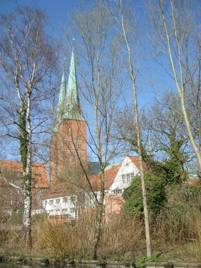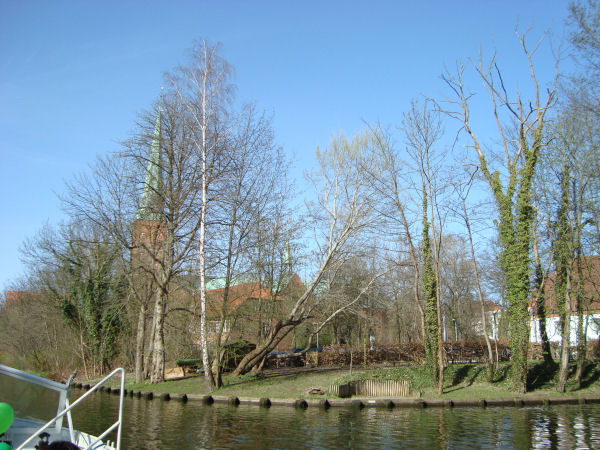 Schauen wir nochmals von der Trave aus über die verschiedenen Sehenswürdigkeiten oder genießen einfach so den Ausblick, z.B. darauf: