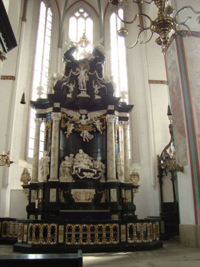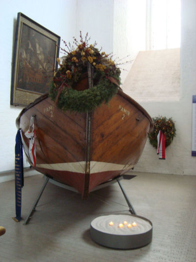 St. Jakobi ist eine Seefahrerkirche und deshalb fand hier auch das einzige geborgene Rettungsboot der 1957 untergegangenen Pamir einen würdigen Platz. Hier ein Modell dieses Segelschiffs.