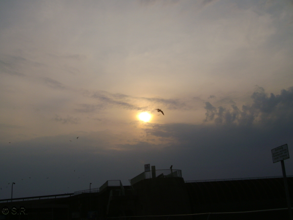 Nein, es ist wirklich noch kein Sonnenuntergang, sie kämpft sich vehement durch die Wolkenfront: