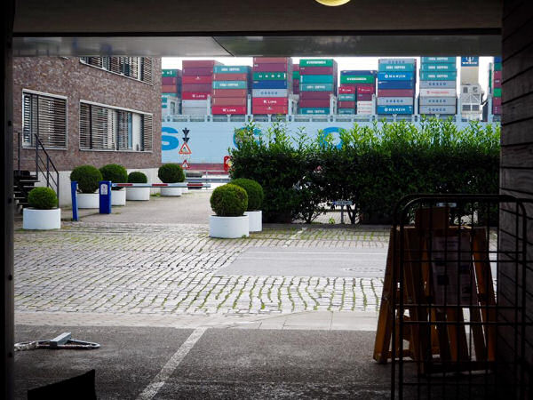 Blick aus der Aussentür. Die Container haben ausnahmsweise nix mit Hanseatic Help zu tun.